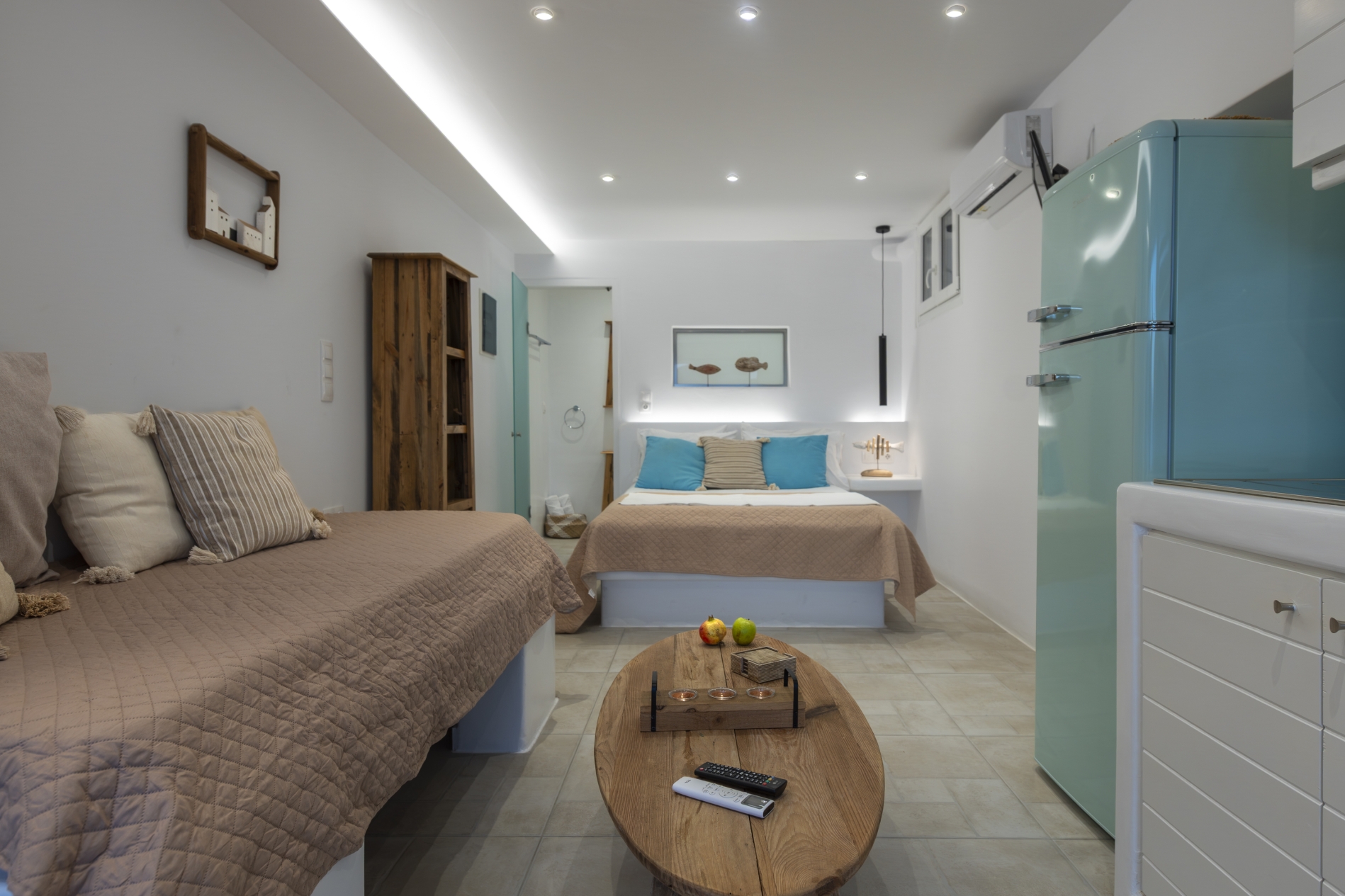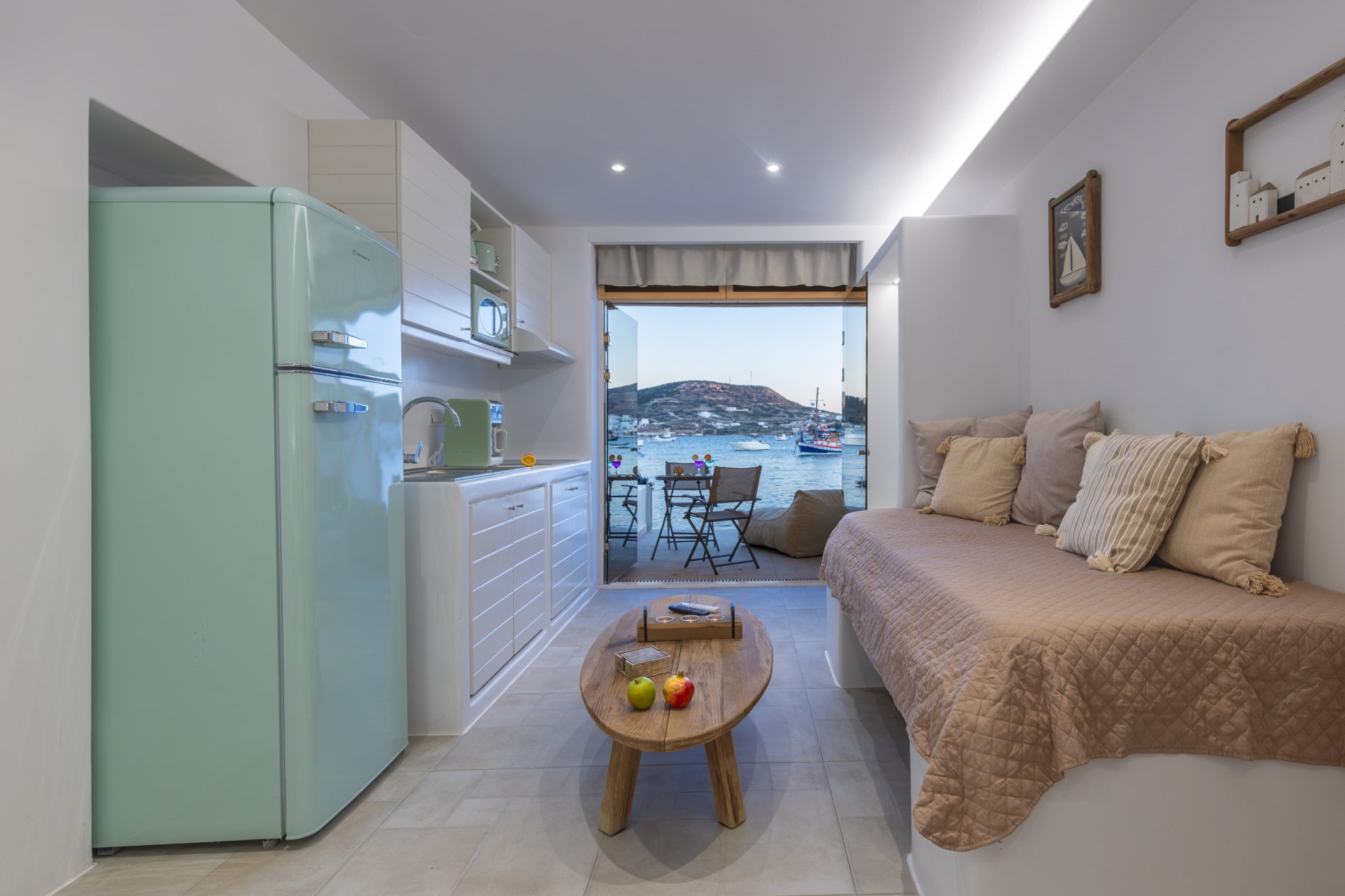 The area is a real cave, in direct contact with the sea and used in the past to guard and protect the boat during the winter months. Today it has been transformed into a comfortable and functional studio for three (3) persons, but with special attention and care, in order to preserve the traditional elements that characterize it.