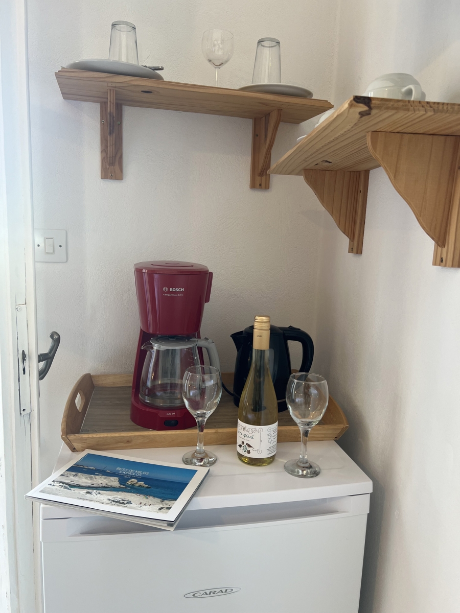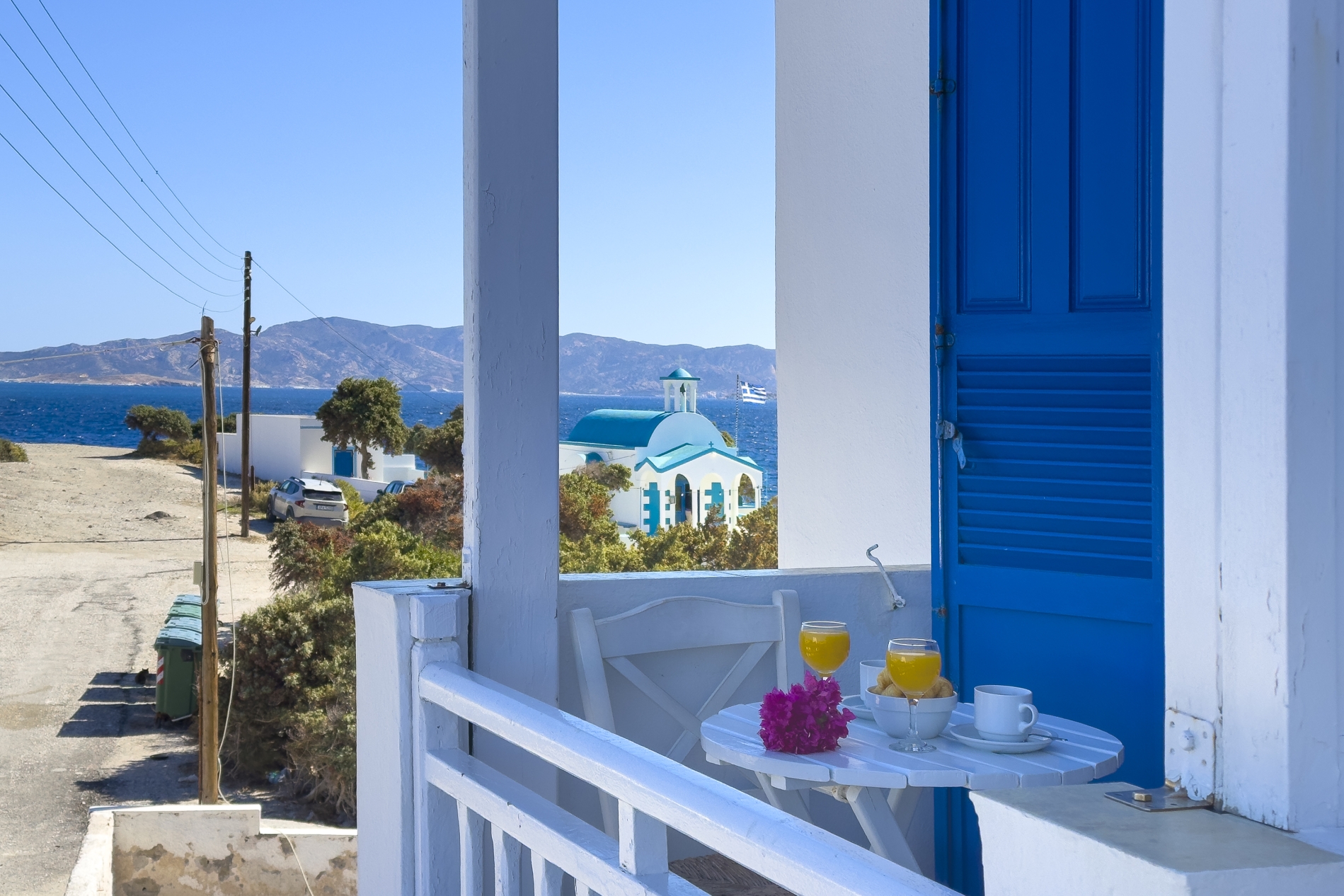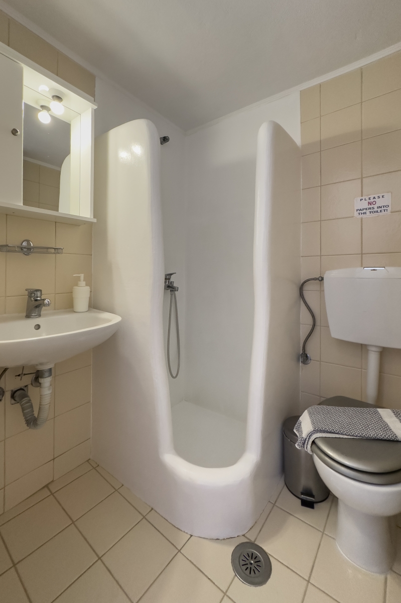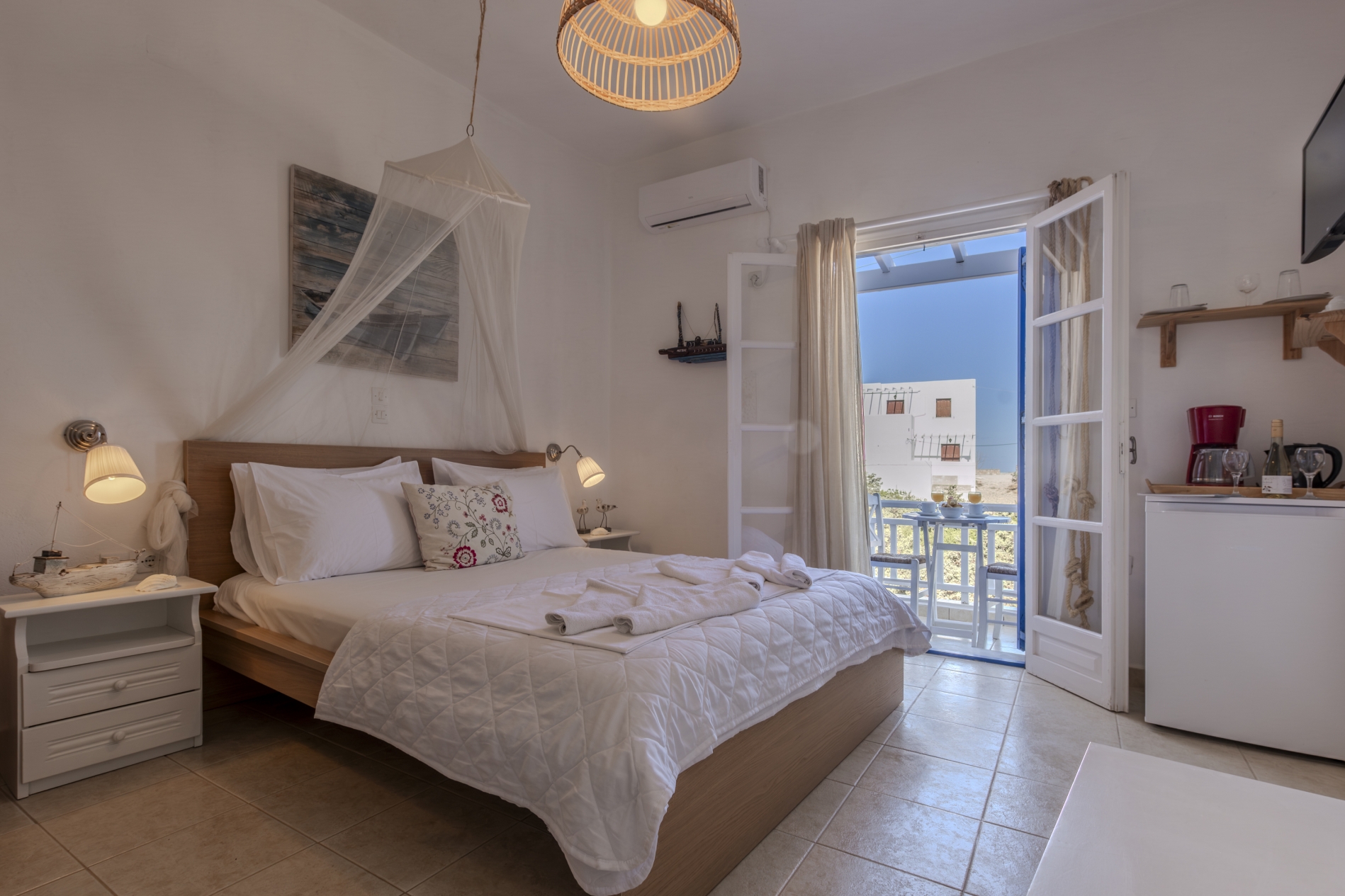 The simple lines and earthy tones of the interiors embody the classic Cycladic style, creating the perfect ambiance for a serene and pleasant stay.