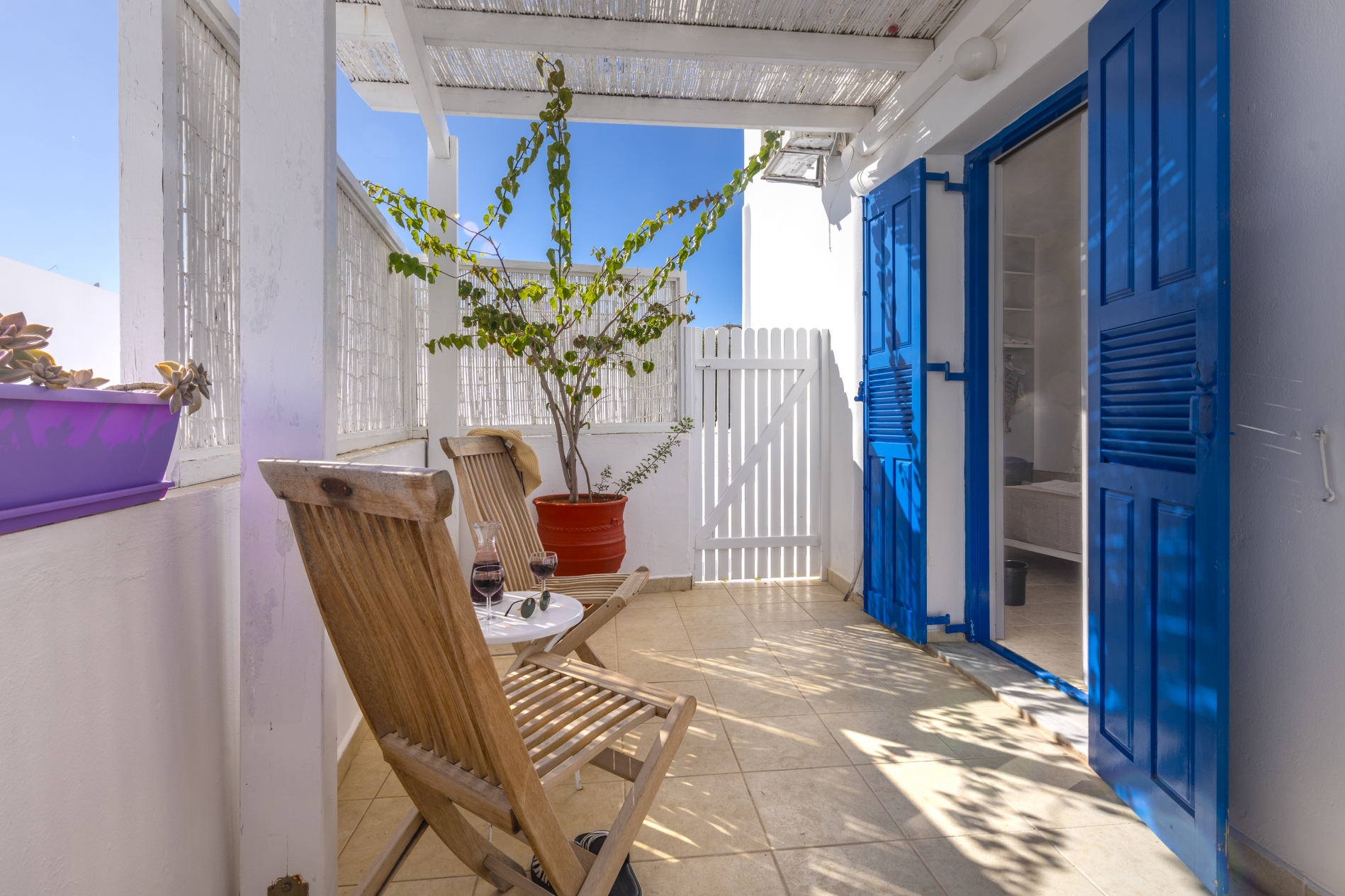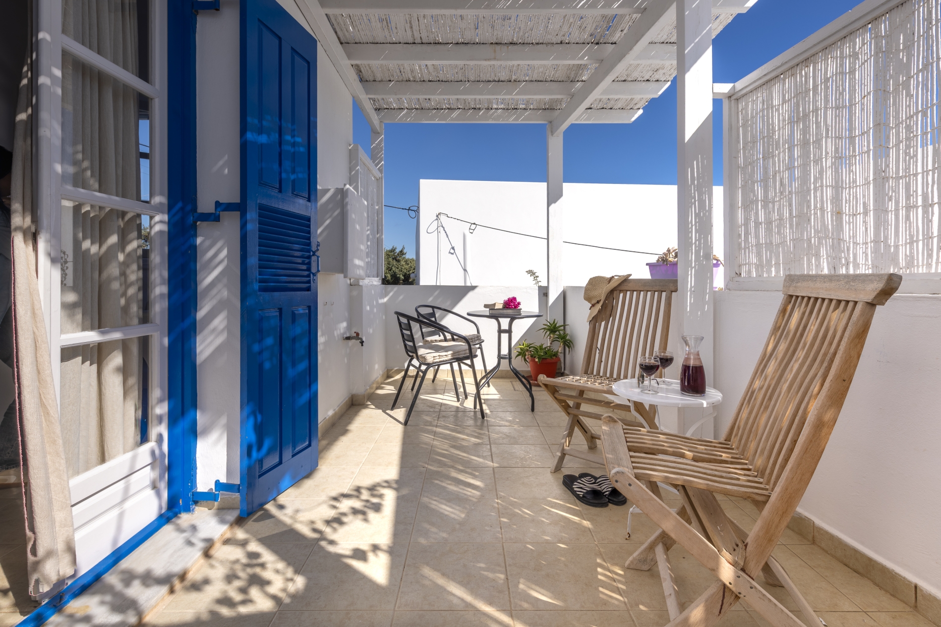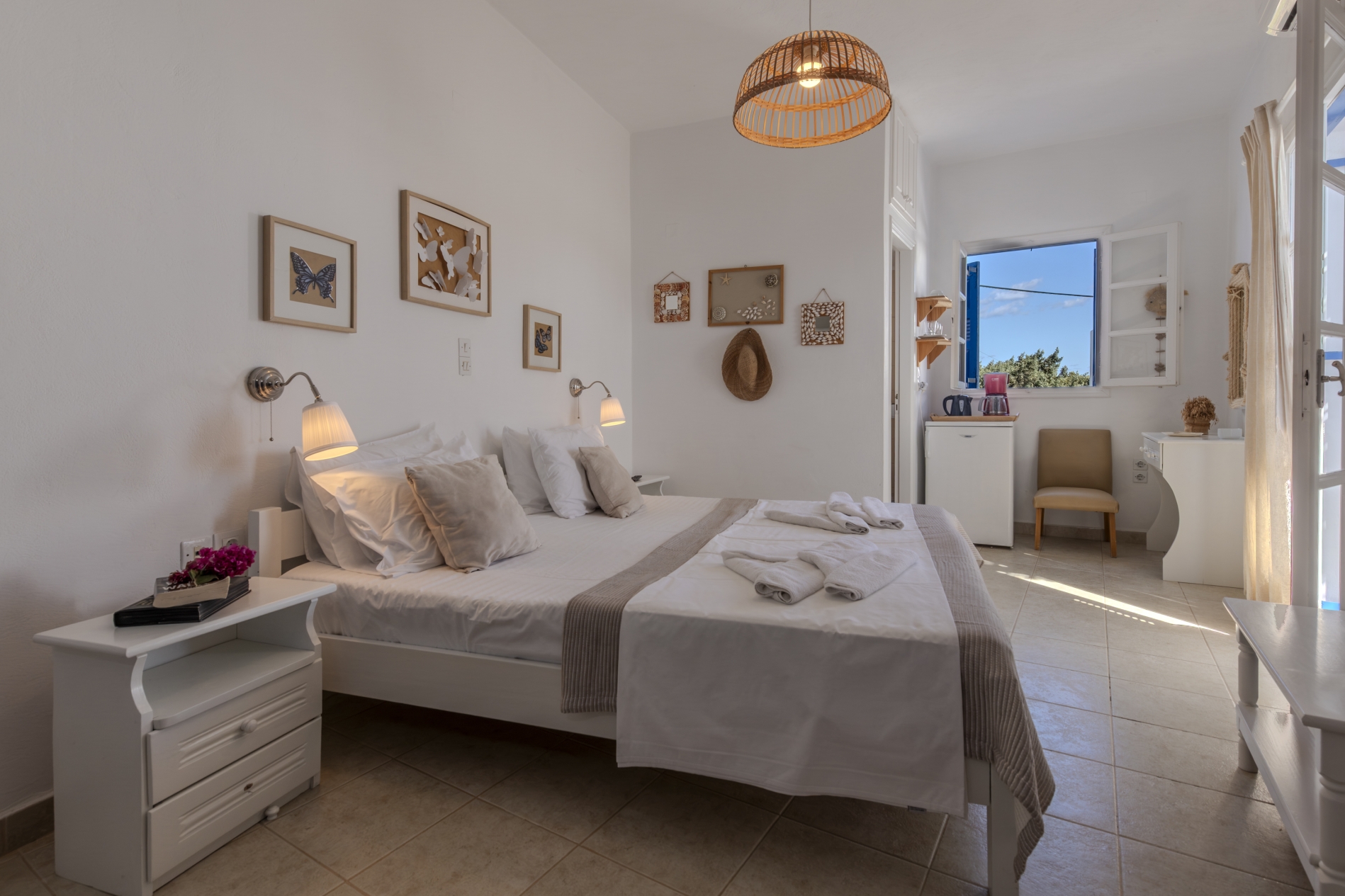Modern double rooms located on the ground floor. Their design is fully suited to accommodate two adults. The simple lines and earthy tones of the interiors embody the classic Cycladic style, creating the perfect ambiance for a serene and pleasant stay.